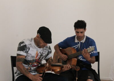 Encontro com a música Guarani. Conversa com Jurandir Djekupe e seu sobrinho Diogo de Assis sobre a importância dos cantos ancestrais.